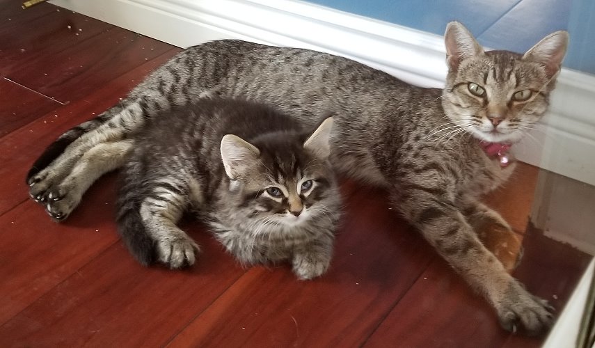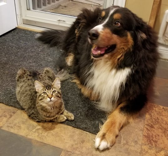 | Bandit and Tristan, August 2018, giving Tristan the "you're my hooman" look | Bandit and his Mommy, Ariel, September, 2018 |