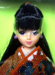 Aya is from Japan and she's 19 years old (blood type : A, sign of the Zodiac : Virgo). She's one of the members of the 2nd generation "Jenny's club" and first appeared in 1988. She has traditional Japanese hobbies such as ikebana and learning to put on a kimono, but she also loves disco-dancing. Her dream for the future is to live overseas and publicize Japan's virtues. Pictured here is the fall 1998 Totoco original version. She's wearing a Takara Barbie.