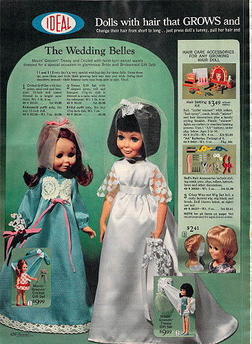 In 1972 Tressy modelled a beautiful bride’s dress with Cricket as the bridesmaid.