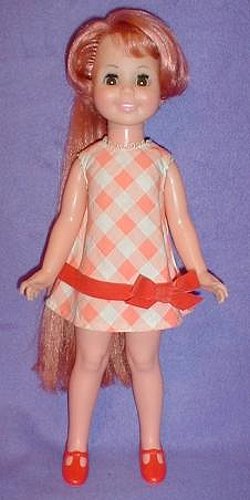 Posin' Cricket is 16" tall. She first came out in 1971. She has long copper penny colored hair and wore an orange and white dress (styled like Velvet’s purple