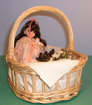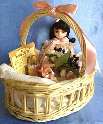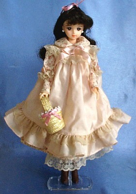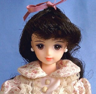 This doll portrays Diana, Anne's friend(from "Anne of Green Gables"). She is a limited edition Totoco original from 1995 and comes in a basket with a bouquet of dried flowers, a straw bag, and pretty underwear. The prototype shown in Jenny magazine was made using the old type Flora as a base. However, when the doll was actually produced, Juliana had been used for the commercial version. Her hair is rather thick and difficult to manage, just like the suntanned Juliana from 1994 and the fair-skinned version from 1995(what is it with Julianas?). There was also an Anne doll, based on Jenny, she also came in a basket, but she wore a more plain outfit.