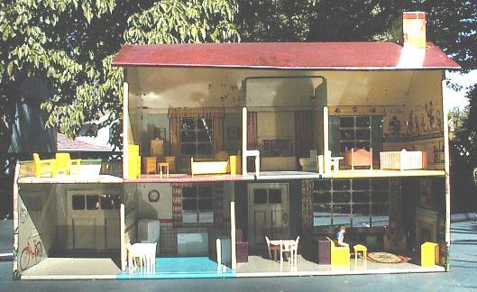 MOST SOUGHT AFTER HOUSE...... According to all the collector books and there aren't that many, this is the most desireable Marx house. The Disney motif in the nursery makes it so. This house was first produced in 1949 and was the first house produced by Marx. It came with the Disney nursery and a garage. |