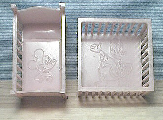 Here is a close up of the Disney themed nursery. You can see the Disney copyright on the bottom of the right wall. Below the pic of the nursery, is a closer look at the special Disney themed crib and playpen that were included with this nursery. |