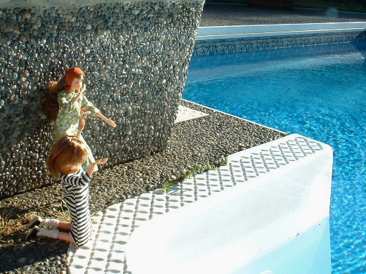 Sachiko: OOOOO The water is sooooo blue and beautiful, I want to dive in. Hiromi: A pool! I've always wanted a pool. |