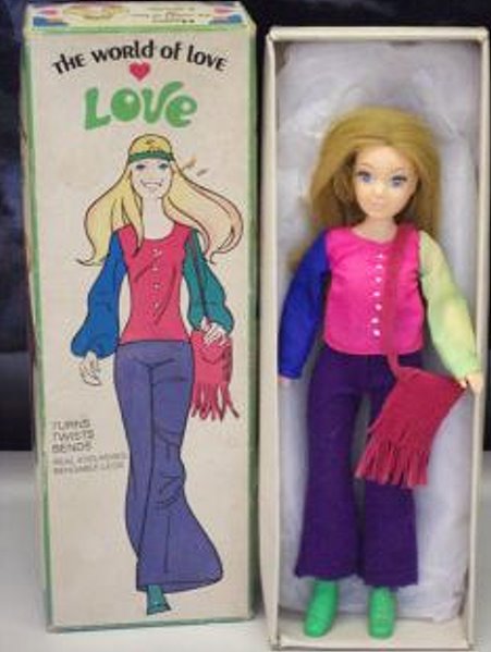 The World of Love Dolls were produced in the 1970s by the Hasbro company. They were loosely based on a Cosmetic manufacturers London Look advertising promotion of the time. The dolls were also produced in Europe under the name of Miss Matchbox Disco Girls. A special thank you to Jenny E. for sending some info to correct some errors and to add info that was lacking.