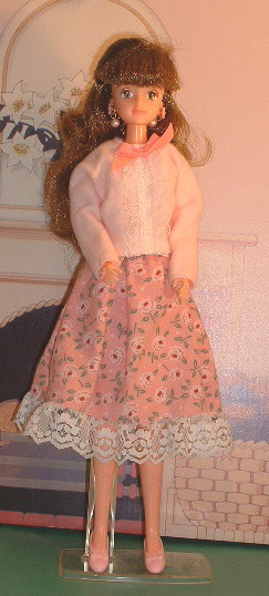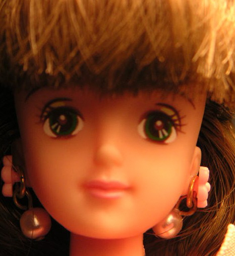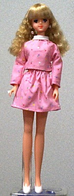| This is a Maba Barbie. These dolls were jointly made by Mattel and Bandai for the Japanese market between 1986 and 1989. She is slightly taller then Jenny (28.5 cm - 11.2") and, though her face is very similar to Jenny's, there are a few differences. The face is narrower and the features sharper, a little "pinched". |