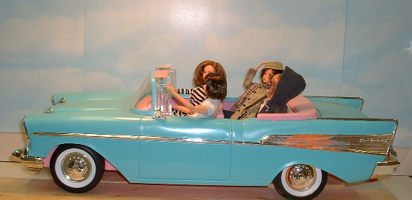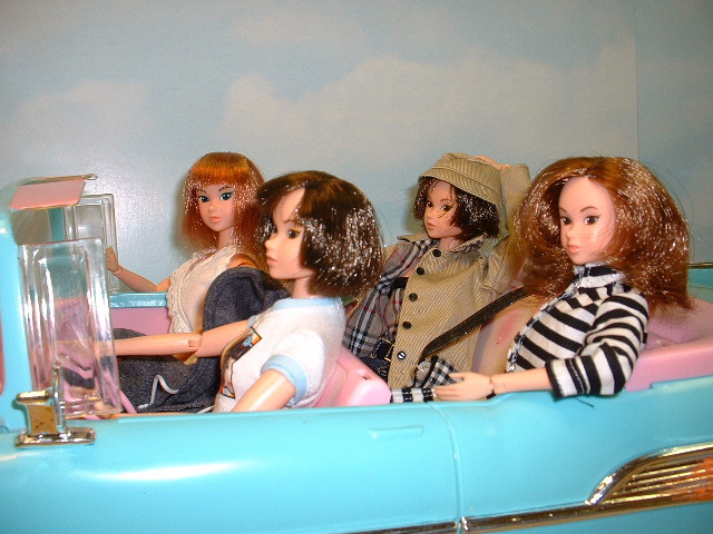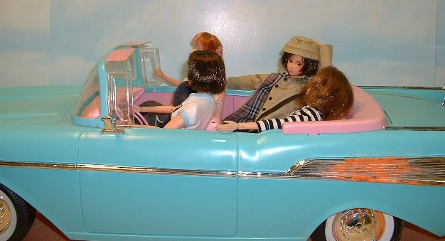 Momoko: Everyone in? Fasten your seatbelts.......oops I forgot this is a '57 Chev......no seatbelts. momoka: Oh really Momo, you were supposed to have them installed ages ago. Momoko: Uh yeah well soon. As soon as Shou gets back from vacation he said he would do it. Momoka: I knew Barbie had to be getting rid of this thing for some reason! |