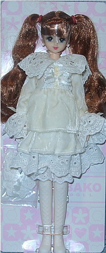 This doll is from the Licca-chan Castle 5th Thanks Fair. She has brown eyes which is rather unusual for a Marine (This is possibly the first time such a Marine was released). She wasn't in the fair mail order catalog and was only available to people who went to the Castle in person. She is wearing a dress by Kaori.