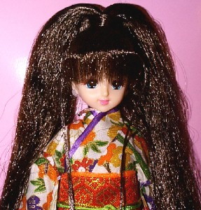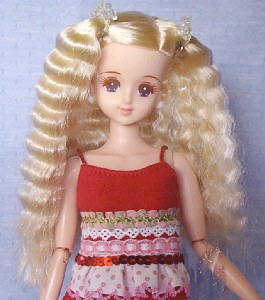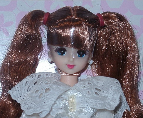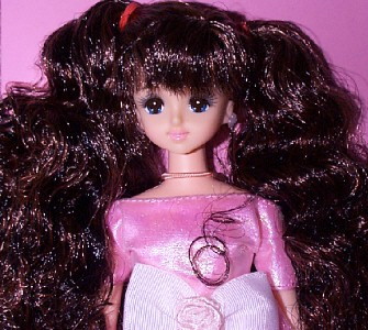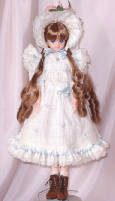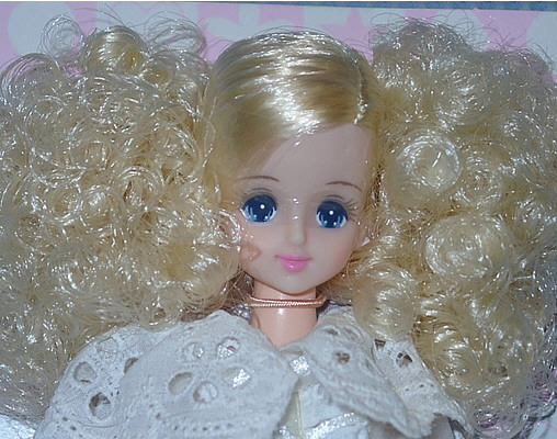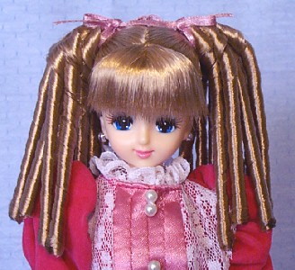This Castle Marine was ordered from the Thanks Fair 4 "after-service" catalog. Like Thanks Fair 4 Erika, she has 12 fine sausage curls on each side. She's wearing a 1998 Victorian Excelina dress.