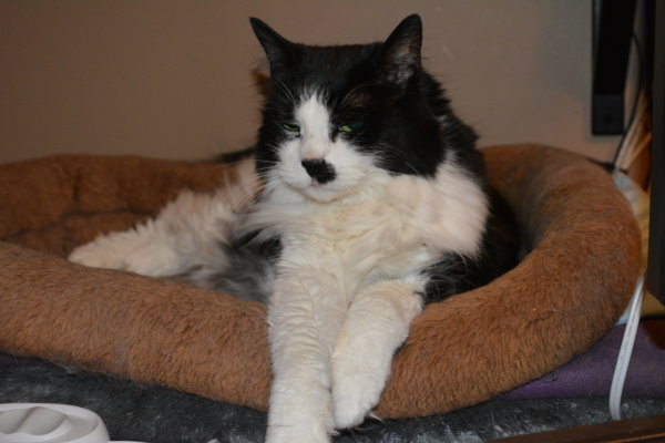 Sadly, Spider, who only ever wanted to be a house cat, had only two years of his dream come true. Spider passed away, at home, naturally, January 16, 2018. Three weeks earlier he had been diagnosed with Lymphoma. It was so sad, how quickly he succumbed. He was his old self until three weeks before he passed. I noticed he seemed lethargic and suddenly felt very skinny, with his big winter coat on it was hard to notice until one was petting him. I took him to the vet the next morning and blood, tests, scan, and x-rays showed a large mass in his large intestine. Further testing by the specialist hospital confirmed what we feared. Spider came home with some meds for palliative care. He was great for two weeks and then he began to decline swiftly. He began having seizures and I called the vet to say that things were getting worse. The night before he passed away, I brought him to bed with us and he layed on his bed between us and never moved. The next morning he was not responding to me at all and I called the vets to confirm our appointment. Suddenly he began vomiting and convulsing. I held him through it and he looked up at me, looking horrified and helpless until he passed. He wanted to live and his body fought to stay with us, but the disease had taken too big a hold and there was no stopping it. My vet told me when I called her and said we didn't need her to come, that cats were like that, you never know if they're sick until they're really sick and often it's too late. Spider was a feisty but very loving kitty. Minnie misses him greatly. At least he enjoyed two years of house cat bliss. RIP Spider, you are loved and missed.
