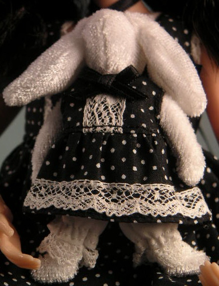 | Clothing | Gothic Lolita style dress in white/black polka dots, white crinoline, white bloomers, black bunny dressed in matching outfit |