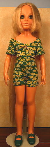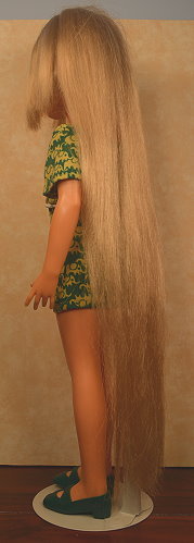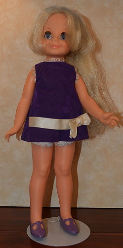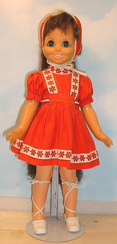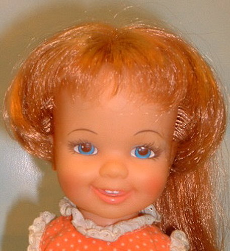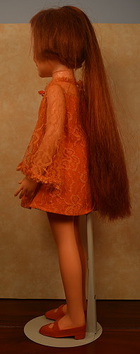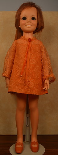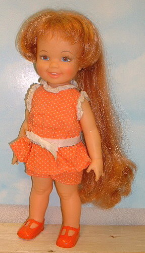My Crissy collection started when I was visiting a friend who had a very eclectic collection. She used to sell dolls at the local doll show as well so she had a LOT of dolls. I was visiting one afternoon and we were looking for a Barbie that she said she had for me. We had searched the upstairs of the house and went down to the basement. There were 4 or 5 chest type freezers down there and I thought, sheesh how much frozen food can one person store. She started with the wall of boxes and told me to open the first freezer. To my surprise it was crammed full of thes beautiful big dolls. Who are these I asked and she replied oh that's all Crissy and family stuff. Crissy was so beautiful and I knew she needed to come home with me. I started digging through and found every different doll I could. By the time Irene came back with the Barbie I had come for, I had several "Crissys" out on the table. She named them all for me and I took one of each different doll, a Crissy, Tressy, Kerry, and Brandi. The next freezer had the smaller girls and I snagged Velvet, Mia, and Dina. I started watching eBay for different kinds of each girl and I discovered Cinnamon.