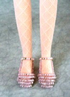 by Japanese residents. Rie is wearing a dress and stockings made for her from
