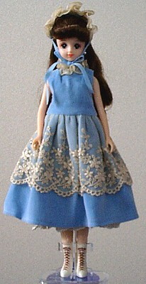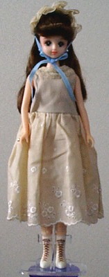 She comes in a fabric-lined woven basket, with a dress stand,