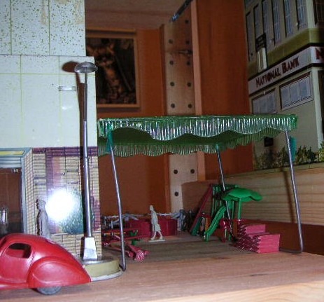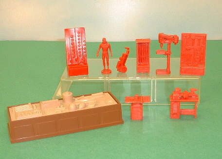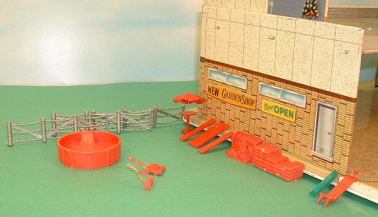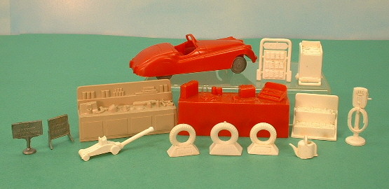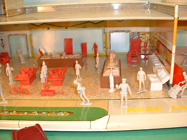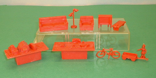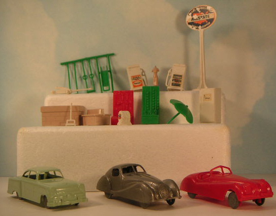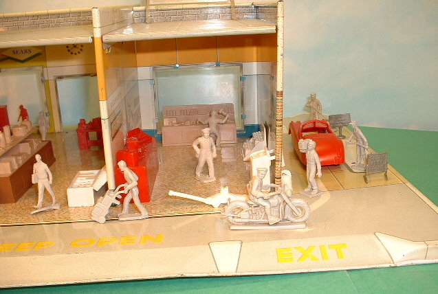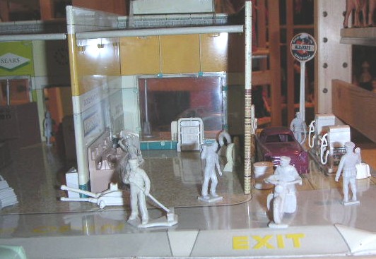 FIGURES Man pushing separate handtruck Handtruck for above Man pumping gas Man w/hammer & chisel Man w/box on shoulder Man pushing sweep broom Lady walking in coat Lady standing w/girl Lady pushing baby carriage Policeman on motorcycle Lady walking in dress w/bag & purse Girl holding ice cream (have girl, but ice cream broken off) Man in uniform walking Man running w/briefcase Man in cap pointing and looking up |