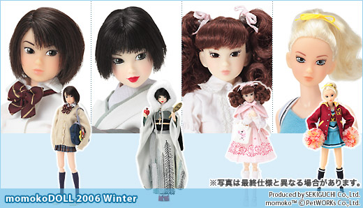 Origianlly Sekiguchi started producing their Momokos in Volume issues. Volume 1 came out in Spring & Summer, 2005. After Voume 8 (Winter 2006), they changed to the PetWORKS type numbering of Seasons, SS(Spring/Summer) AW(Autumn/Winter). To date (2014) on the Sekiguchi Doll List, the Dolls are all listed chronologically with no mention of seasons or volumes. Here are the original Volume releases.