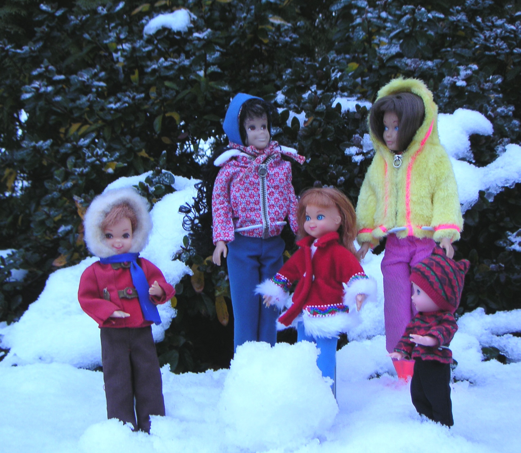 Ah, nothing like a skiing holiday at the cabin..........recognize the pond we were skating on earlier.......well it's been transformed into a Winter Wonderland with the first snowfall of the season. Barbie and friends are out early to get the best possible conditions.