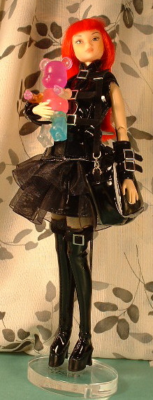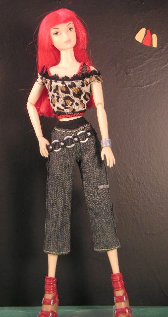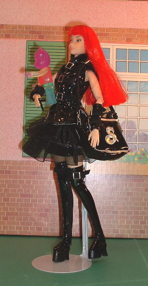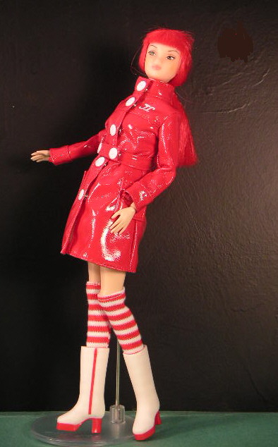Susie travels to the land of the rising sun for a promotional appearance for a brand new video game that she stars in: "Warrior Girl". To promote this futuristic, virtual reality video game, Susie chose to wear a two piece leather outfit with silver buckle trims. Her hair color is "candy apple red", in homage to various animated & Manga heroines. She is accompanied by her co-star and love interest in the video, an upcoming Japanese actor, Kenji Kimura, who took an instant liking to Susie.