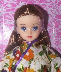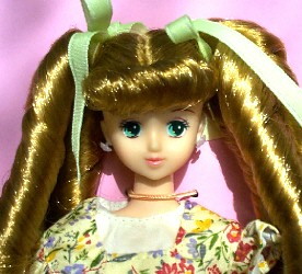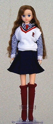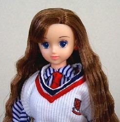 Timotei is 18 years old and comes from Scandinavia (blood type : O, sign of the Zodiac : Cancer). She first appeared in 1990 (in collaboration with the company who makes the shampoo of the same name). She's a real princess from a northern country, but also a stewardess. She's the cousin of another Jenny friend, Charles. Her eye color changed from blue to green in 1995. At the same time a brown haired version was also released. This is the schoolgirl version (there were also schoolgirl Olive and Marine in the same series).
