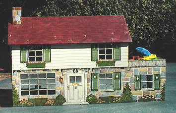 The Colonial with a utility room was produced in 1951. This colonial style is the most common style produced by Marx. The style was first produced in 1949 and came with a garage and a nursery with either a Disney or ABC motif. After 1951 all the colonials had a utility room and non-Disney nursery.