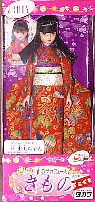 Yumi is 16 years old and comes from Tokyo (blood type : B, sign of the Zodiac : Taurus, born on April 24th). She became a Jenny friend in September '98, and like Naomi's, her kimono was designed by Katsura Yumi, a famous Japanese bridal wear designer. The tops and bottoms of these kimonos are separate so they can be mixed and matched. The Aya head mold was used for this doll.